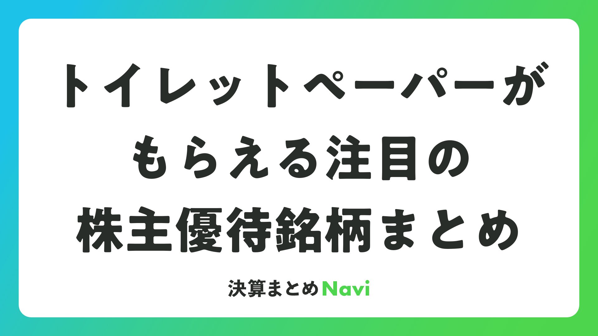 トイレットペーパーがもらえる注目の株主優待銘柄まとめをまとめました