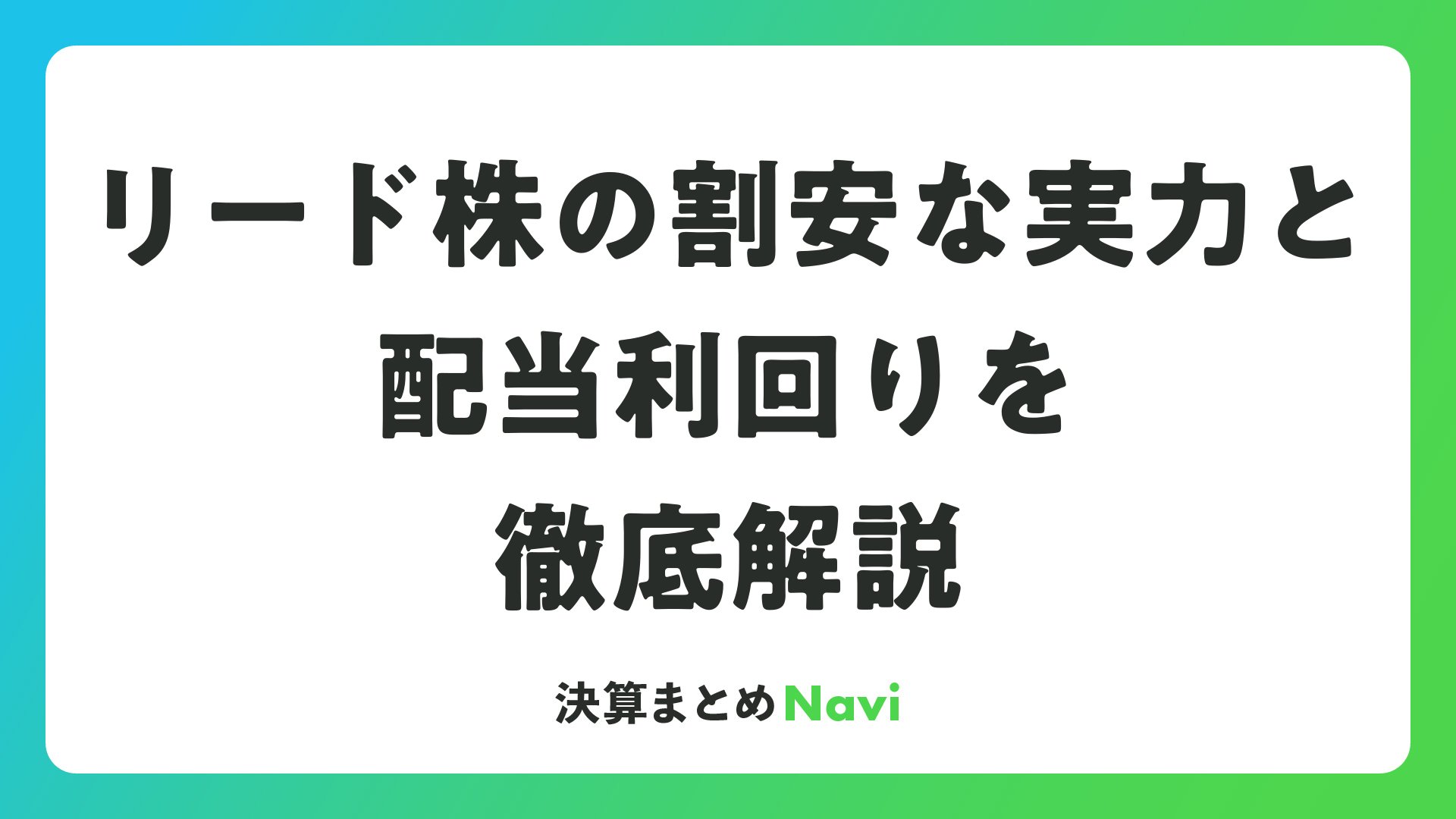 リード株の割安な実力と配当利回りを徹底解説をまとめました