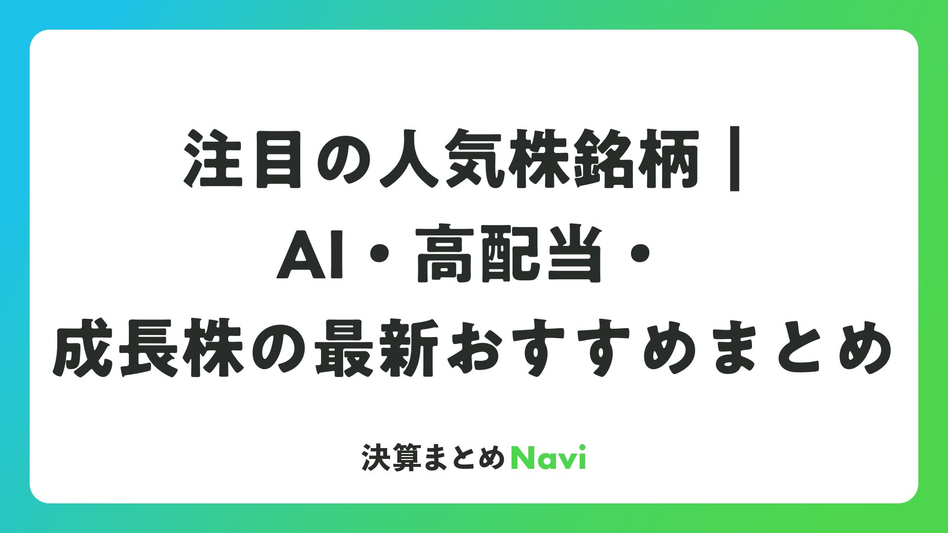 注目の人気株銘柄|AI・高配当・成長株の最新おすすめまとめ