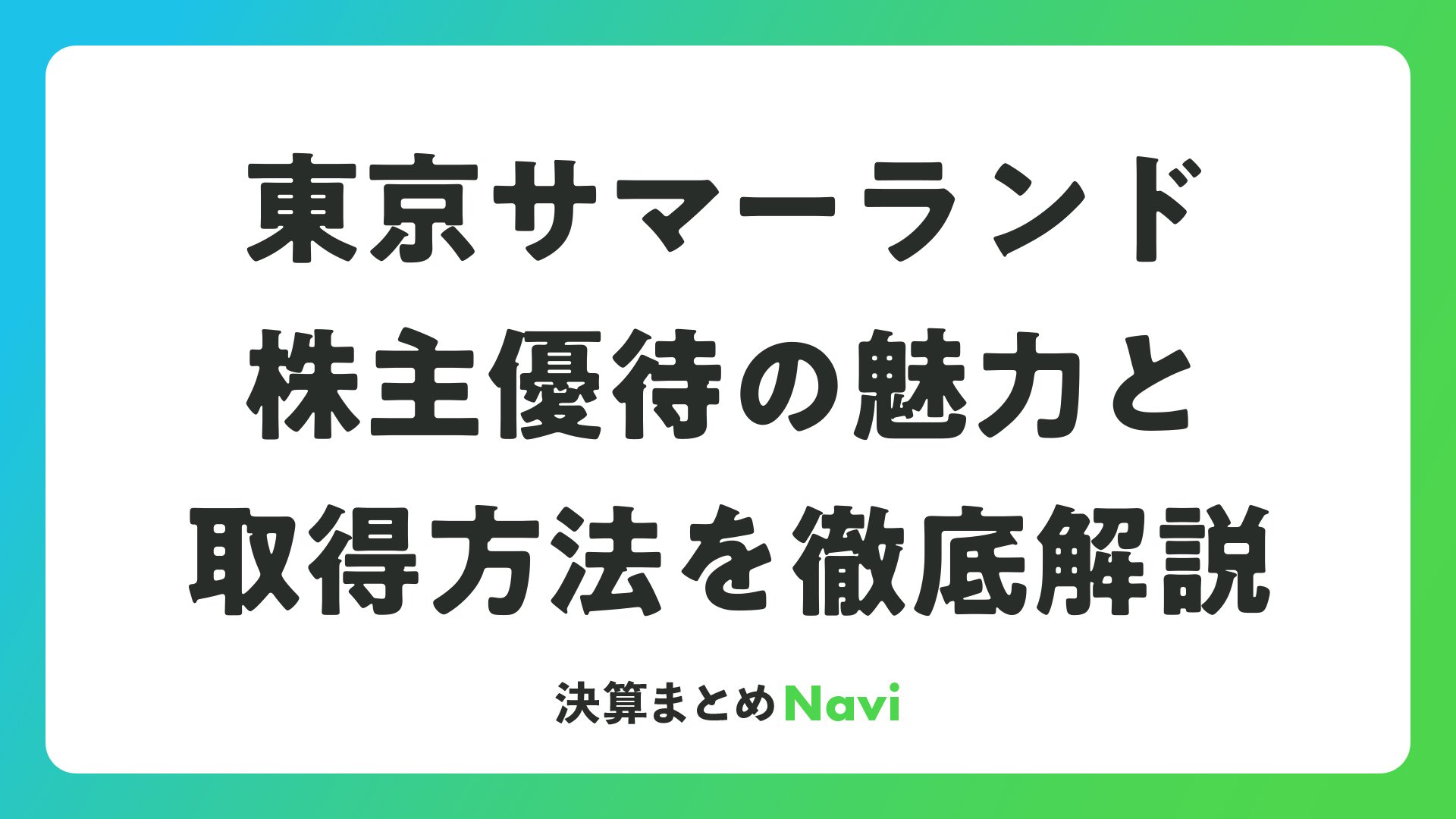 東京サマーランド株主優待の魅力と取得方法を徹底解説をまとめました