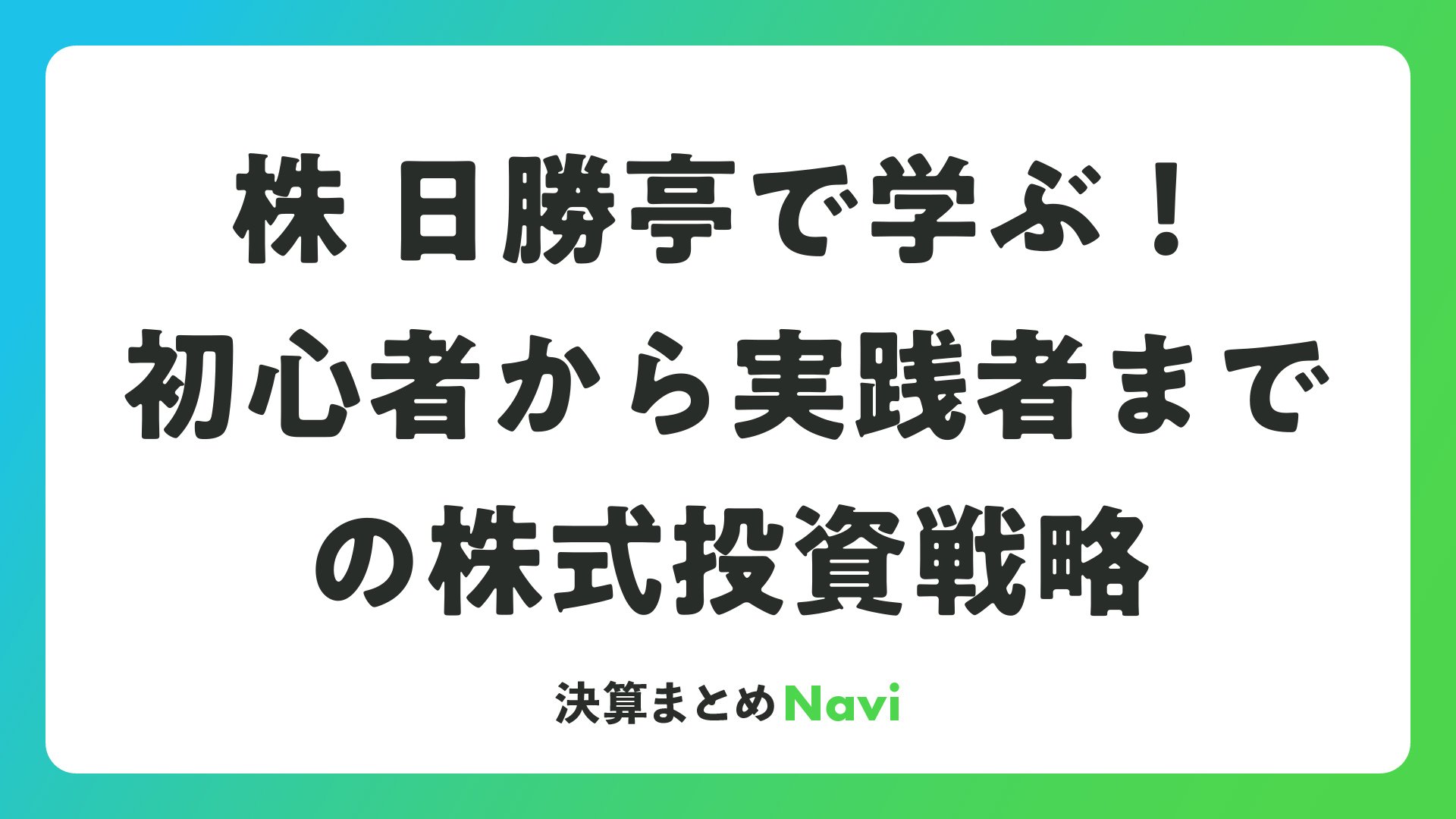 株 日勝亭は、株式投資・資産運用の頼れるパートナーとして、読者の成功を後押しします。多角的な分析と実践情報で、市場のチャンスを最大化しましょう。