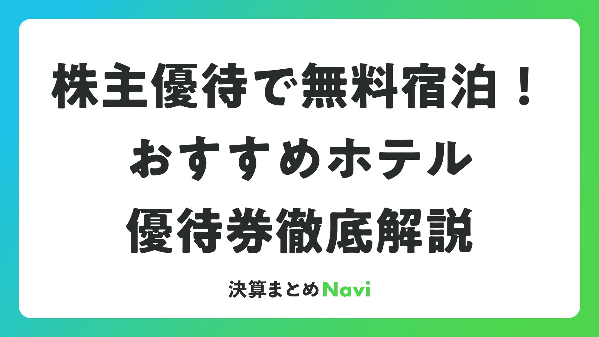 株主優待で無料宿泊!おすすめホテル優待券徹底解説