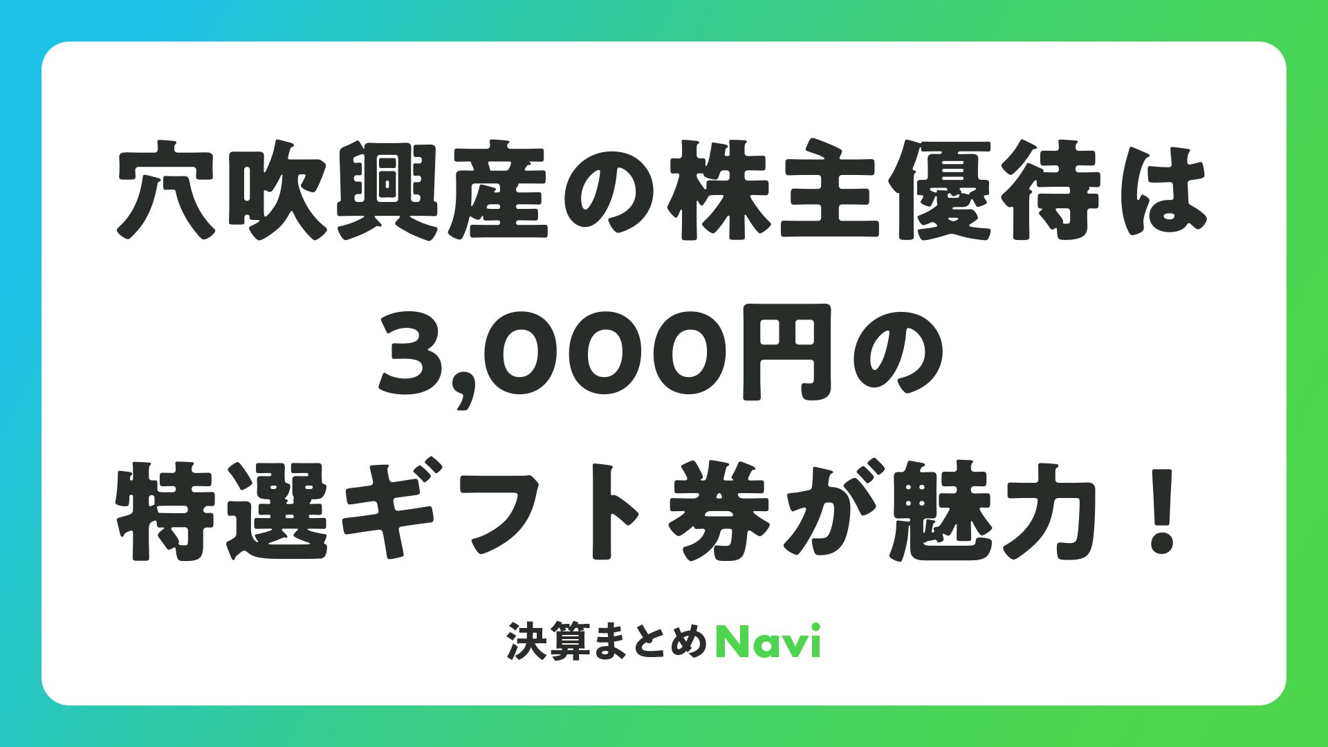 穴吹興産の株主優待は3,000円の特選ギフト券が魅力!をまとめました