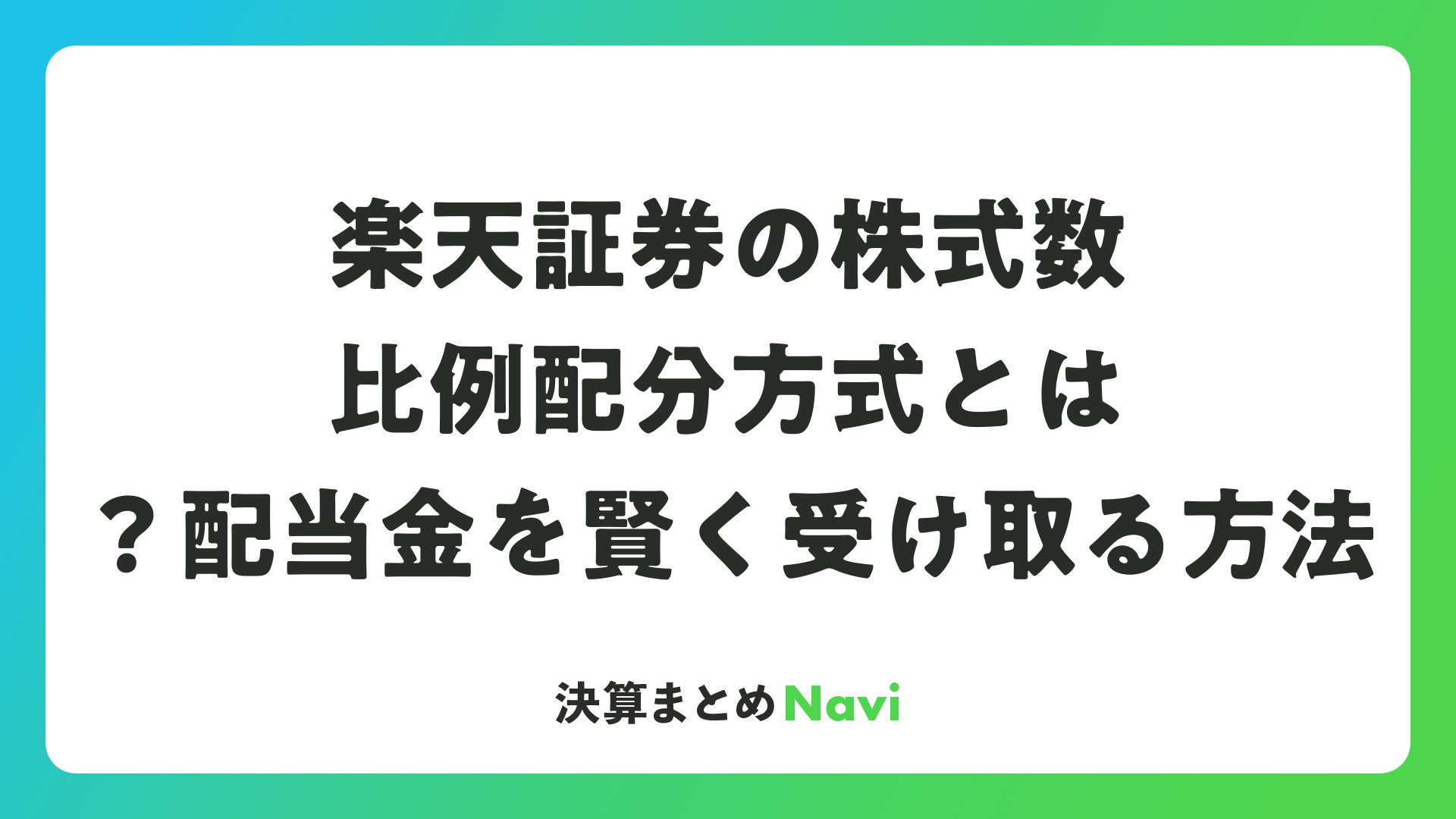 楽天証券の株式数比例配分方式とは?配当金を賢く受け取る方法をまとめました