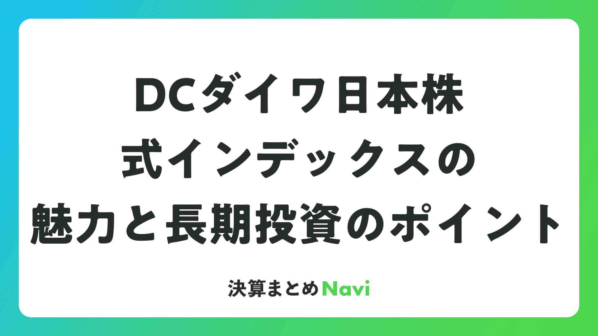 DCダイワ日本株式インデックスの魅力と長期投資のポイントをまとめました