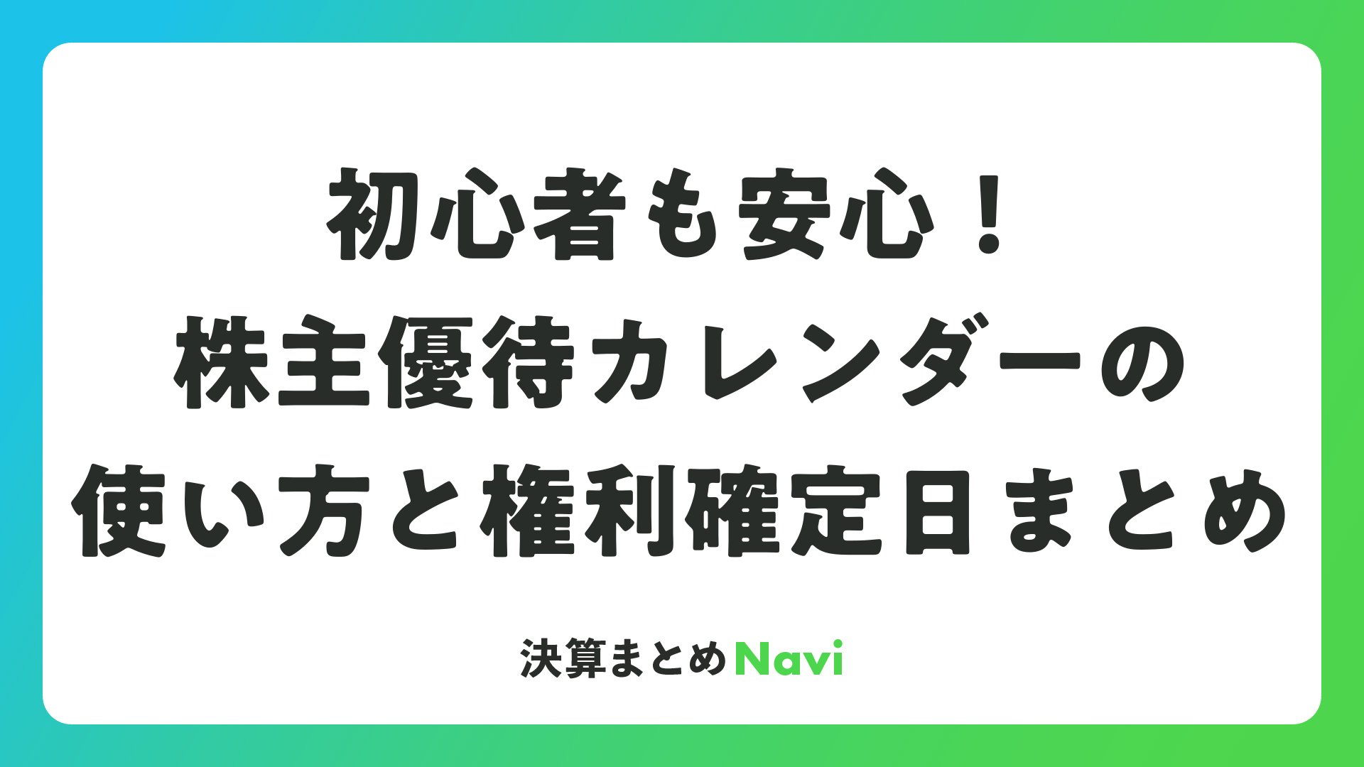 初心者も安心!株主優待カレンダーの使い方と権利確定日まとめ