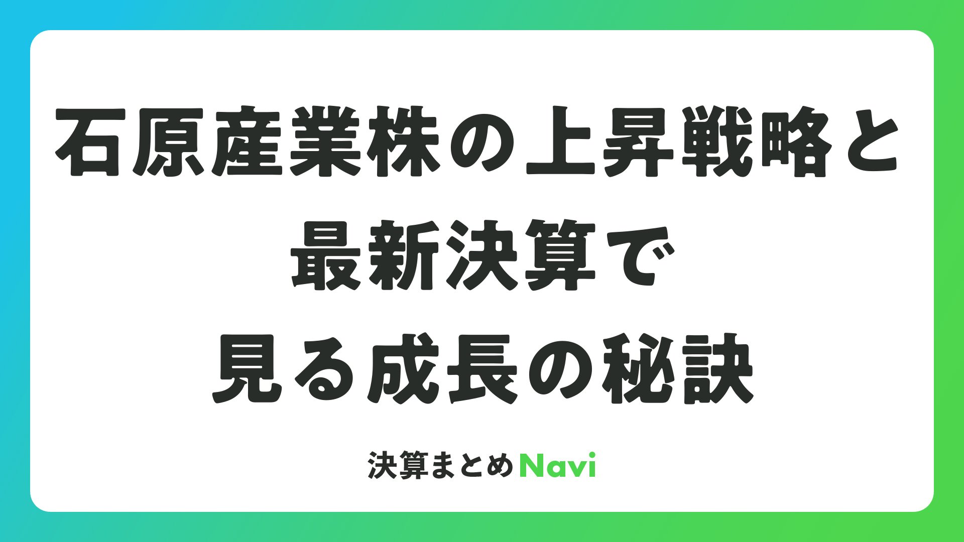 事業の強固な基盤と積極的な株主還元により、石原産業株は資産運用に適した選択肢。最新決算の勢いを活かし、ポートフォリオに検討を。
