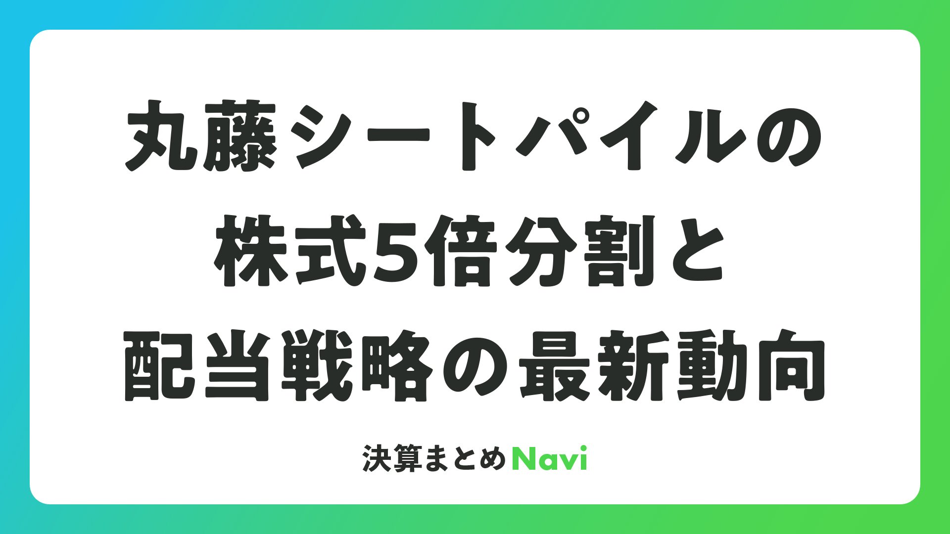 建設仮設材の販売・リース大手である丸藤シートパイルが、重要な経営施策を発表しました。同社は1株を5株に分割する株式分割と、配当方針の大幅な変更を実施することを決定しています。これらの施策は、同社の成長戦略と株主還元の姿勢を示す重要なシグナルとなります。本記事では、これらの施策の詳細と、投資家にとっての意味を詳しく解説します。