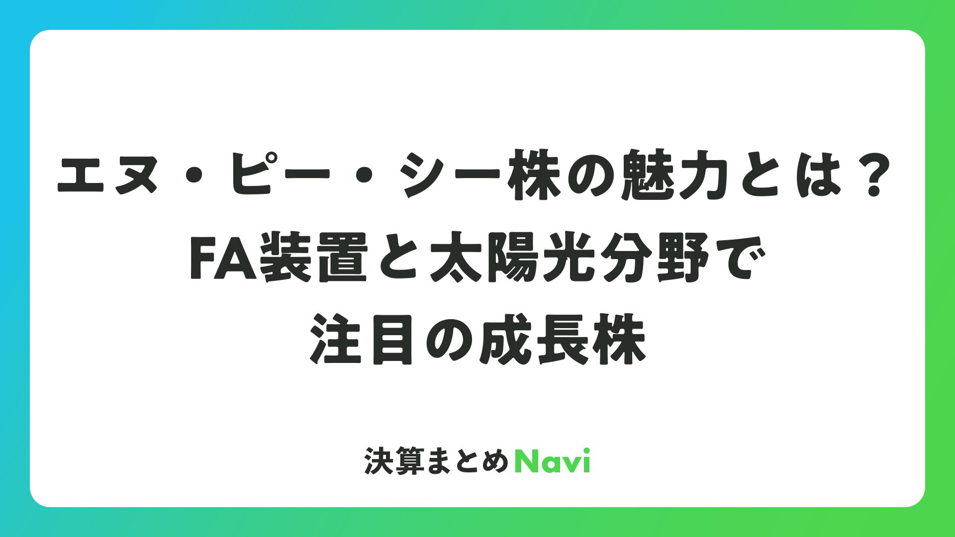 エヌ・ピー・シー株の魅力とは?FA装置と太陽光分野で注目の成長株