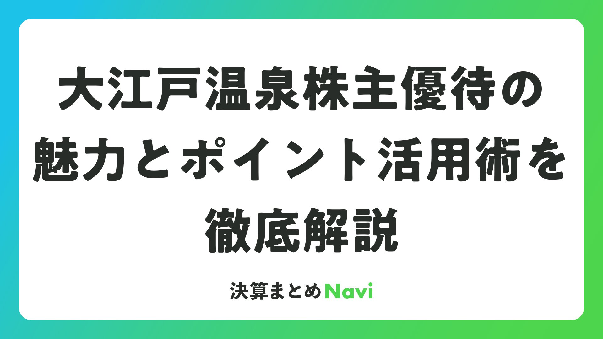 大江戸温泉株主優待の魅力とポイント活用術を徹底解説をまとめました