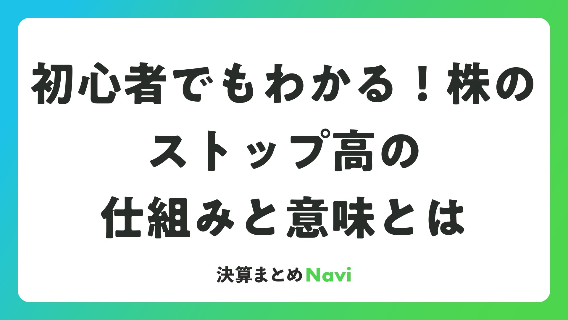 株式投資において、ストップ高は株価が急激に上昇し、その日の上限価格に到達した状態を指します。この仕組みは市場の安定を守り、投資家が安心して取引できる環境を提供します。初心者から上級者まで、ストップ高の理解は資産運用の重要な知識です。