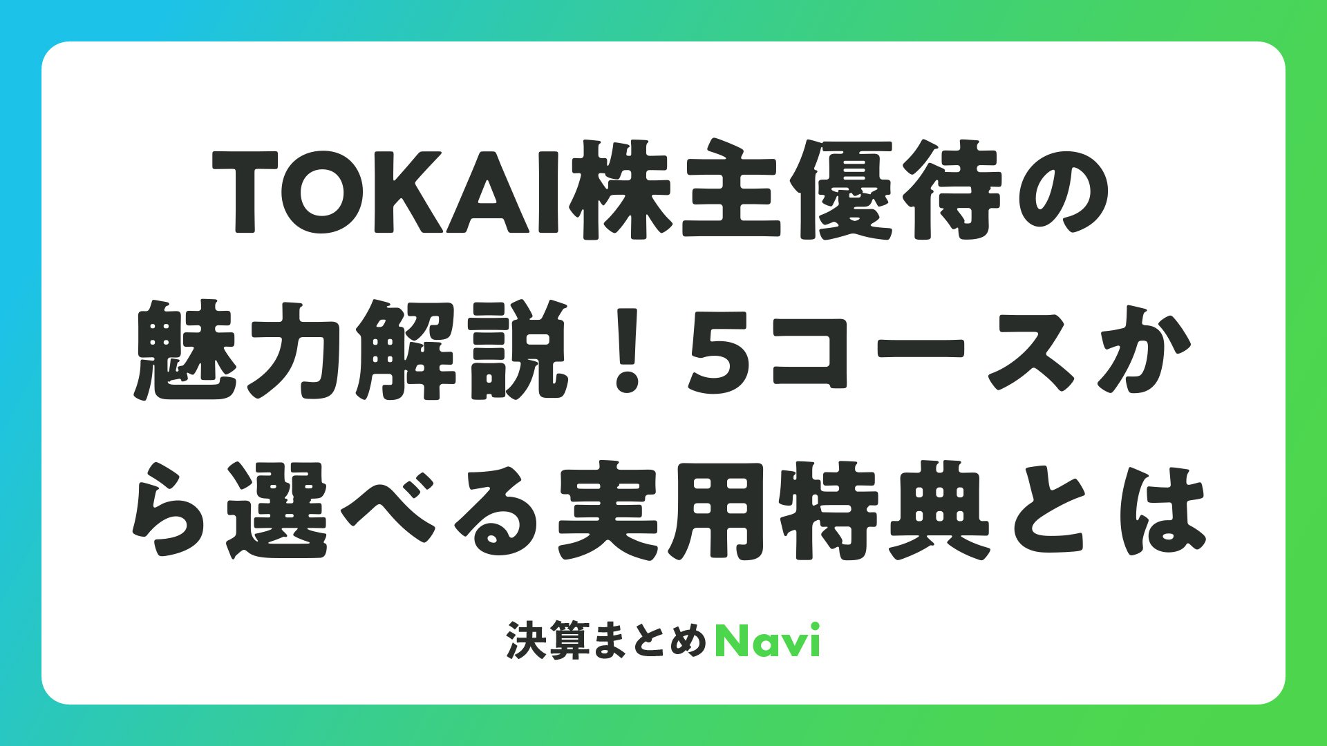 TOKAI株主優待の魅力解説!5コースから選べる実用特典とはをまとめました