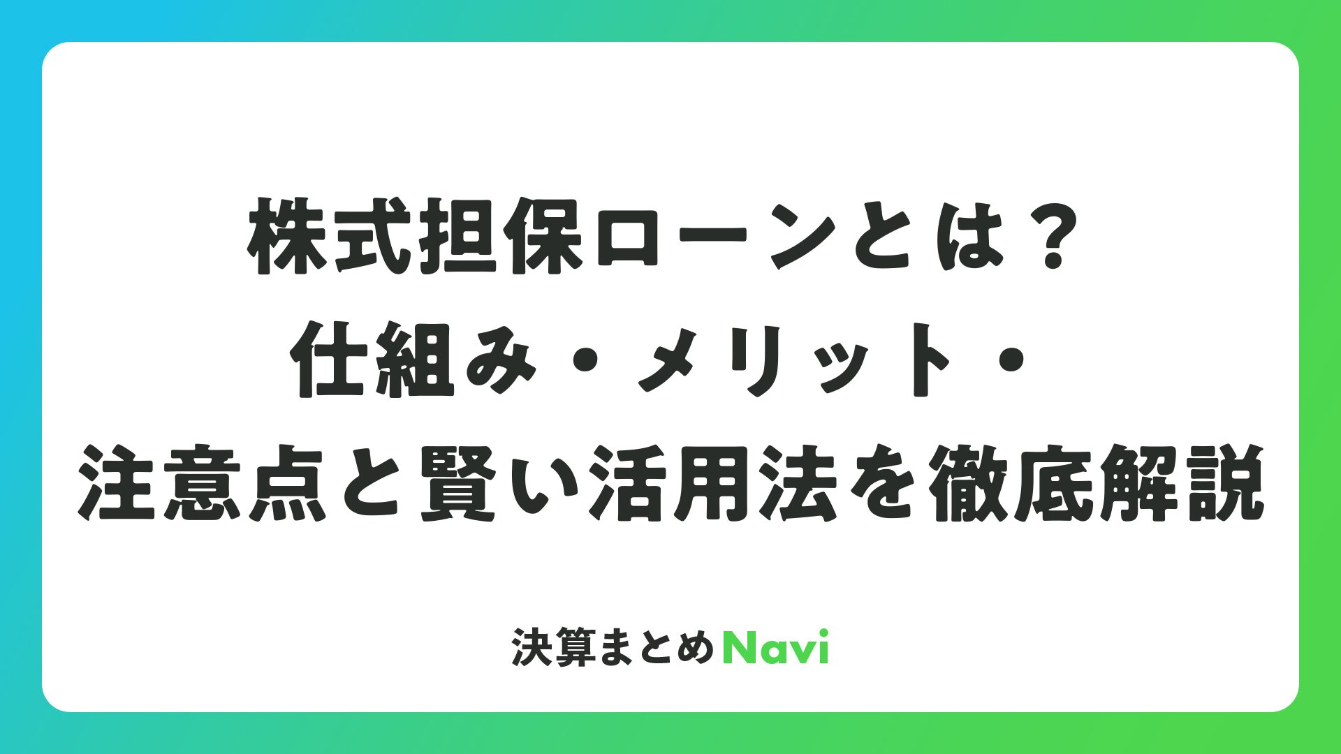株式担保ローンとは?仕組み・メリット・注意点と賢い活用法を徹底解説をまとめました