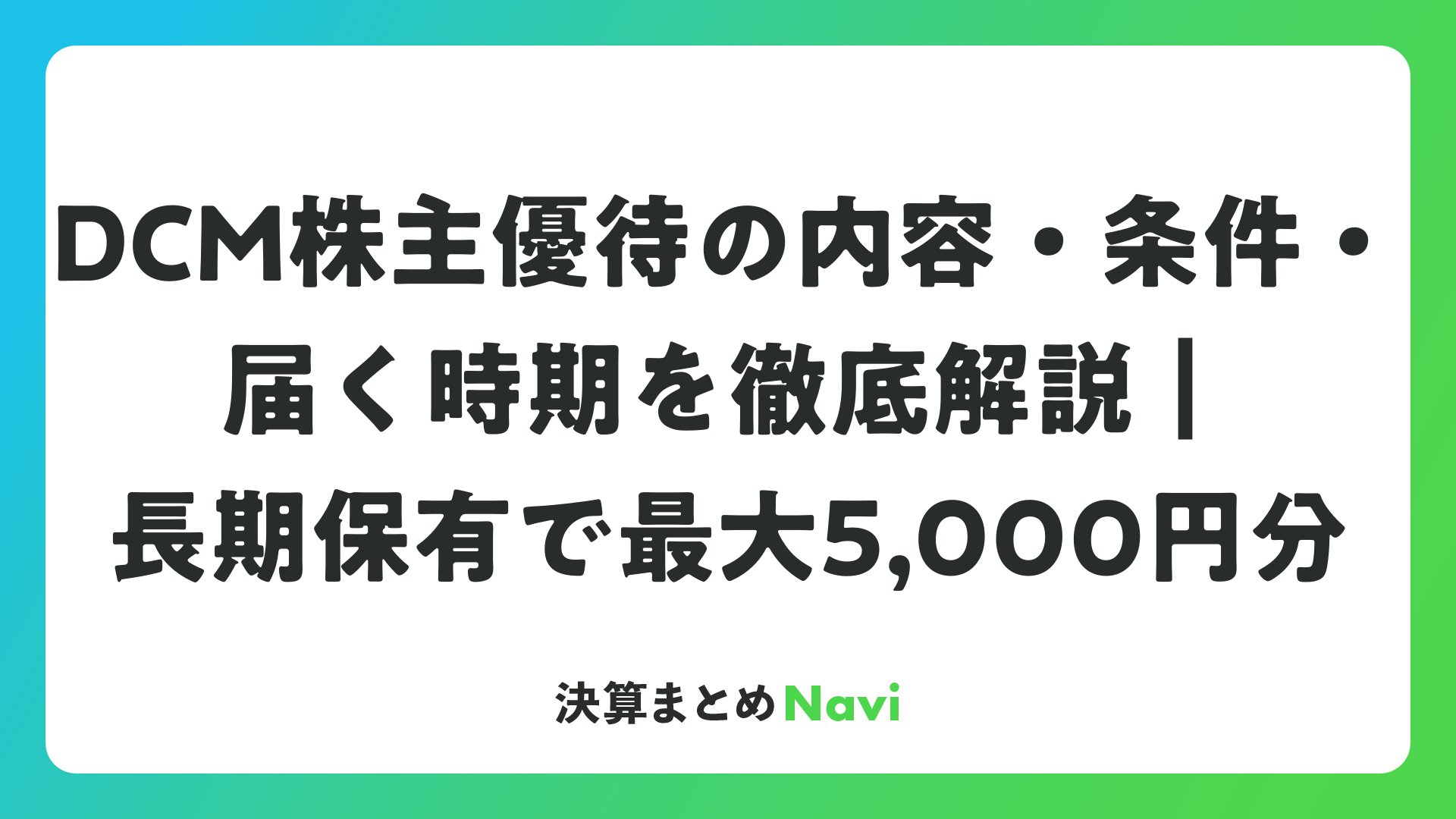 DCM株主優待の内容・条件・届く時期を徹底解説|長期保有で最大5,000円分をまとめました