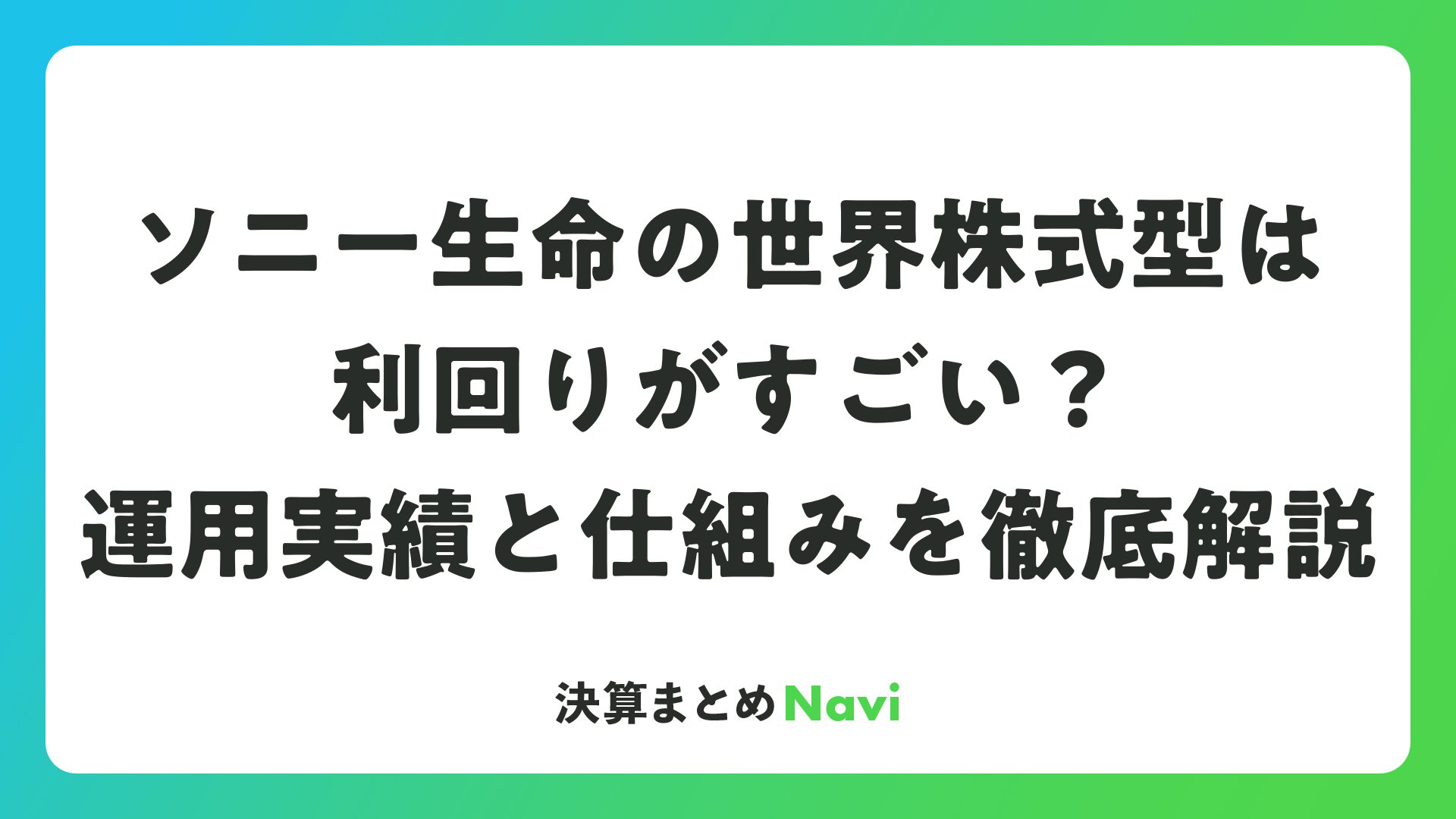 ソニー生命の世界株式型は利回りがすごい?運用実績と仕組みを徹底解説をまとめました