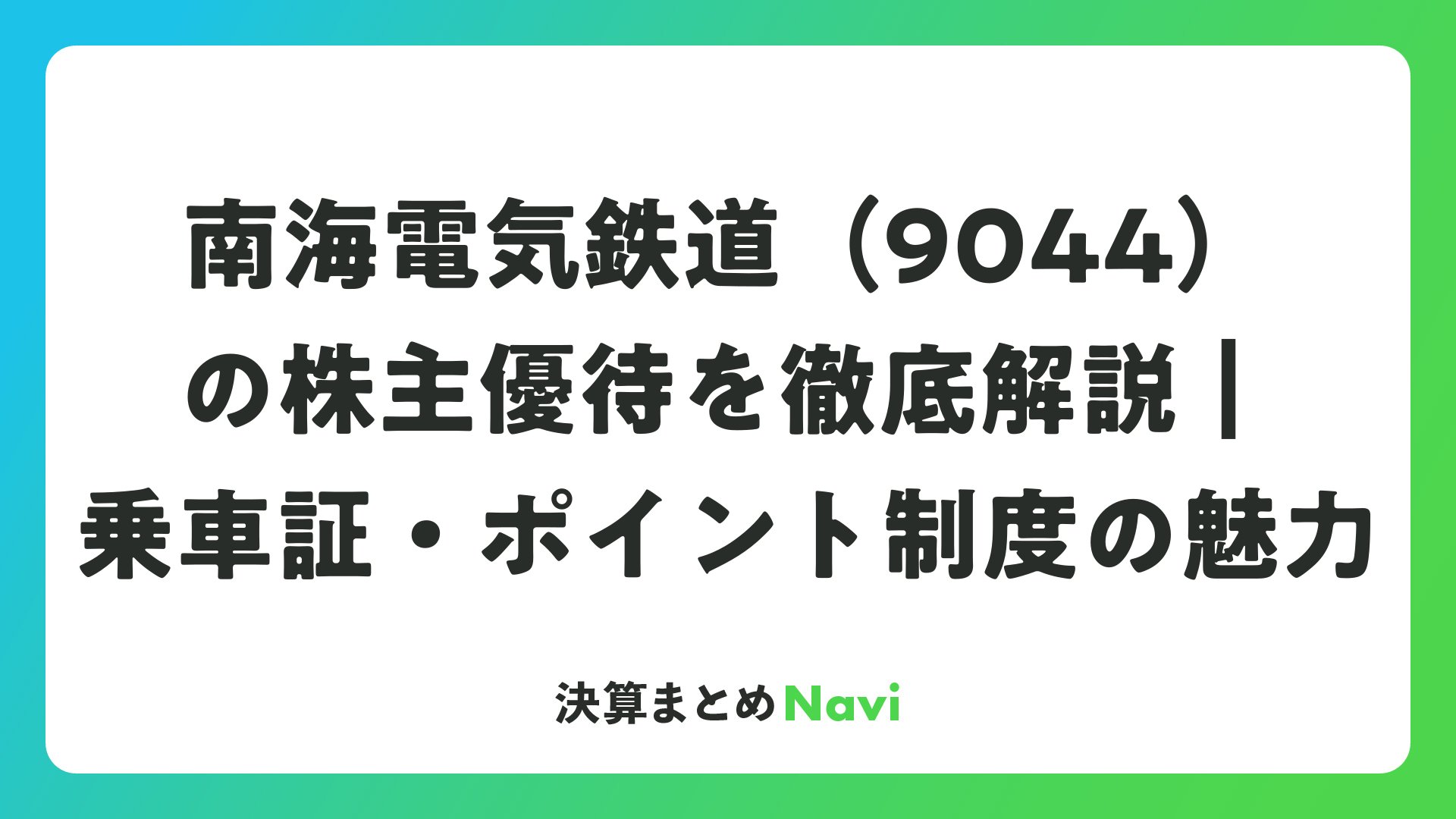 南海電気鉄道(9044)の株主優待を徹底解説|乗車証・ポイント制度の魅力をまとめました