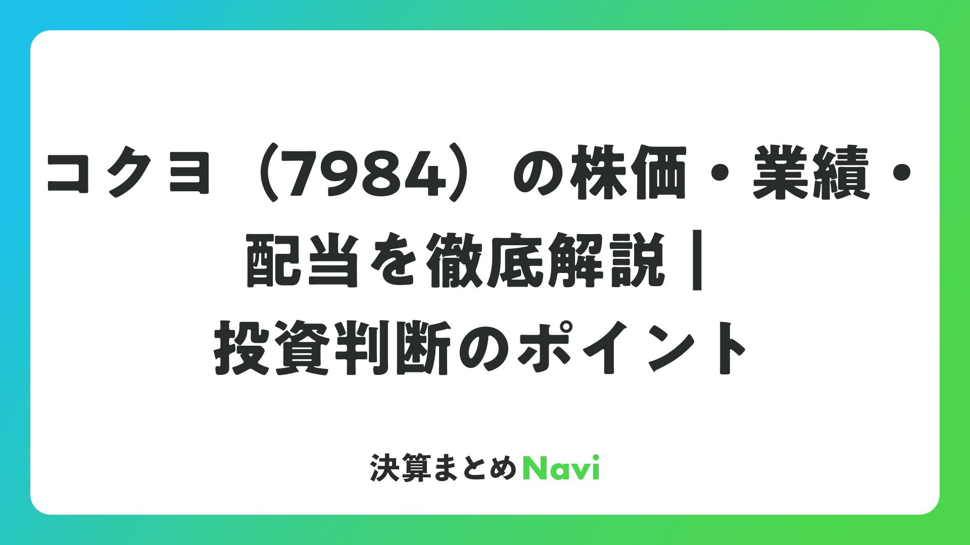 コクヨ(7984)の株価・業績・配当を徹底解説|投資判断のポイントをまとめました