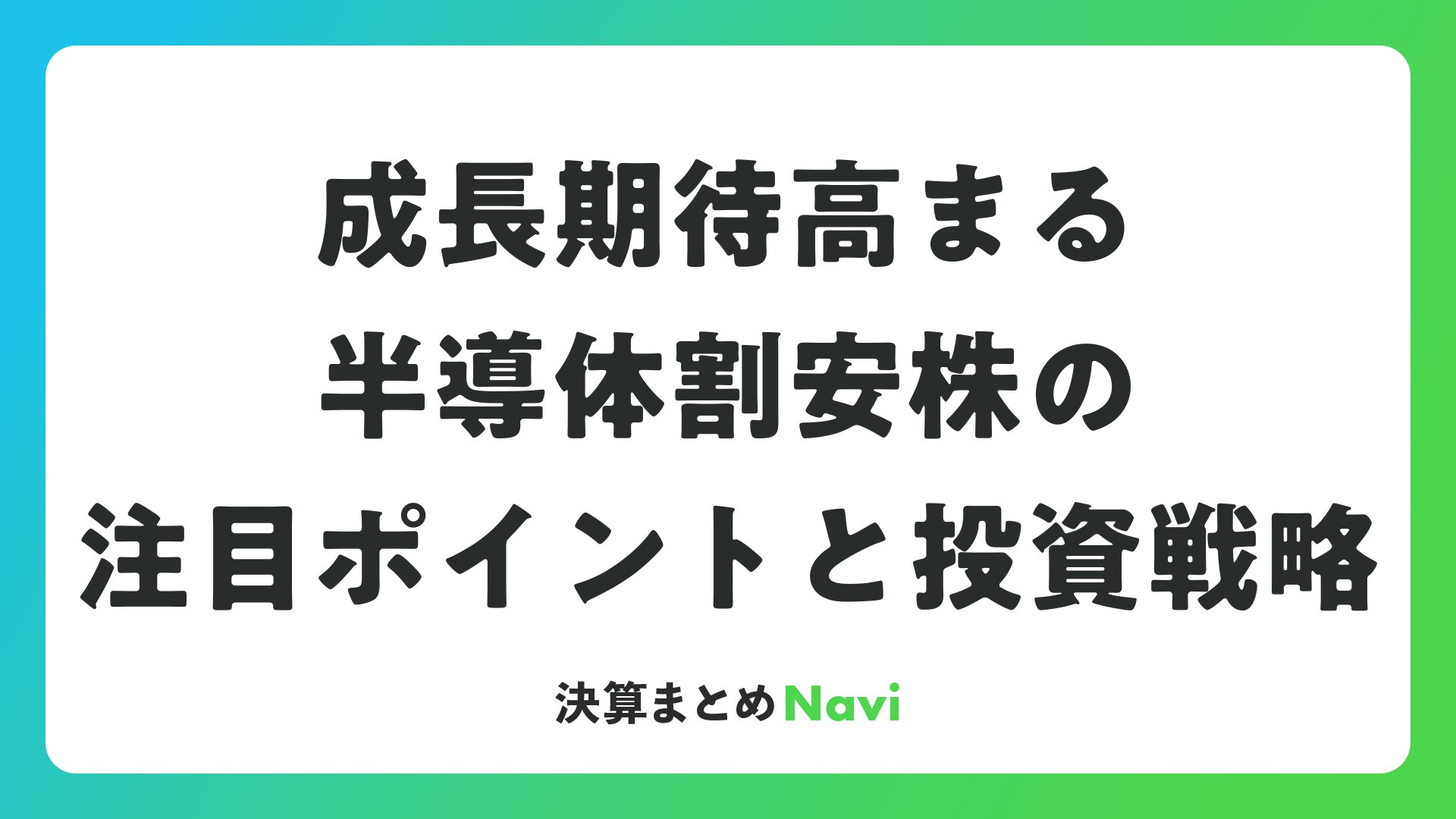 成長期待高まる半導体割安株の注目ポイントと投資戦略をまとめました