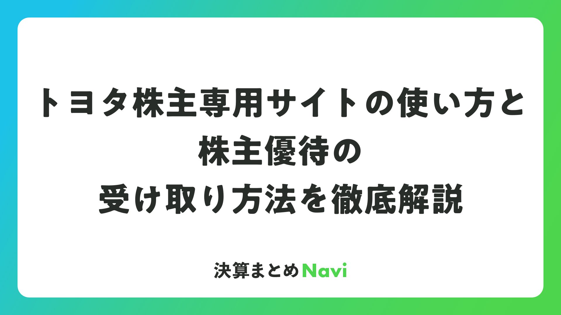 この株主優待の受け取りに欠かせないのが、トヨタの株主専用サイトです。株主専用サイトでは、優待の申し込みや特典コードの取得など、株主だけが利用できるサービスが提供されています。本記事では、トヨタの株主専用サイトの概要やアクセス方法、株主優待の詳細な内容、そして受け取りまでの手順を詳しく解説します。
