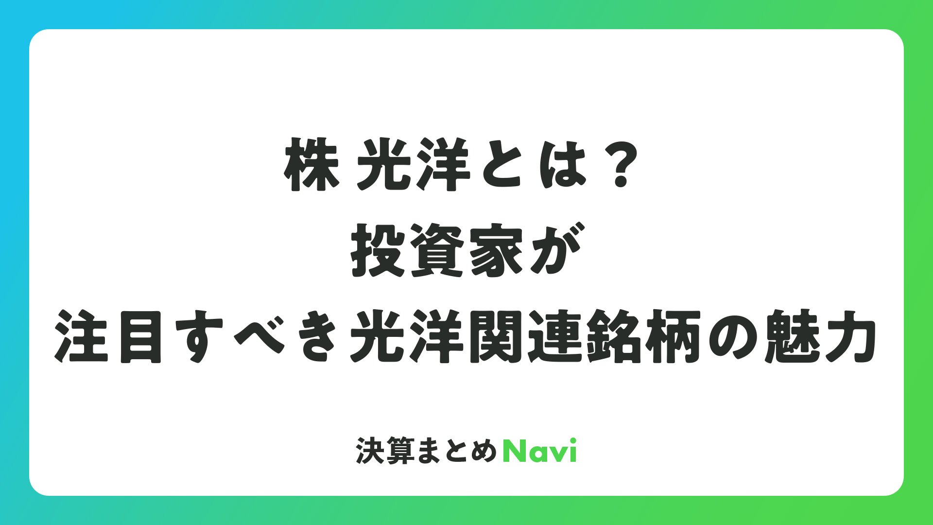 株 光洋とは?投資家が注目すべき光洋関連銘柄の魅力をまとめました