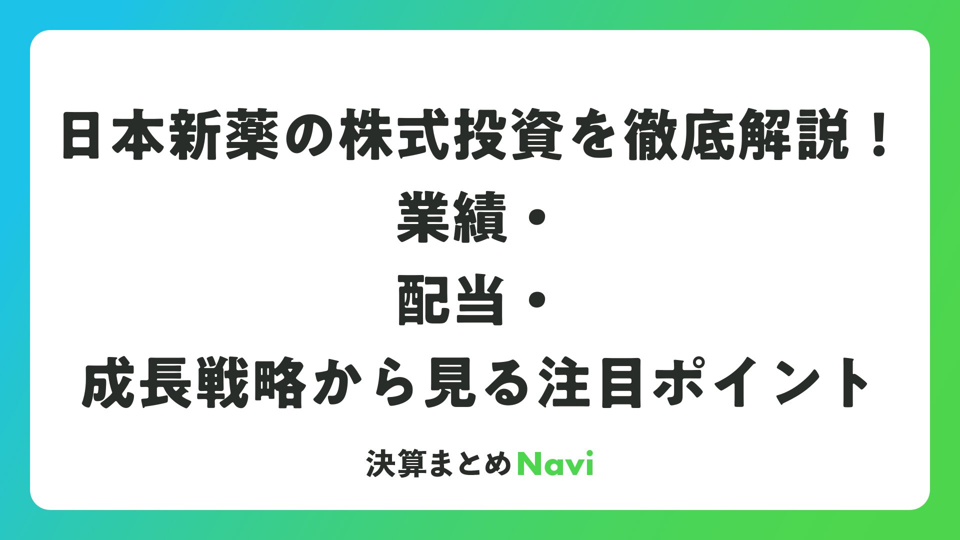 日本新薬の株式投資を徹底解説!業績・配当・成長戦略から見る注目ポイントをまとめました