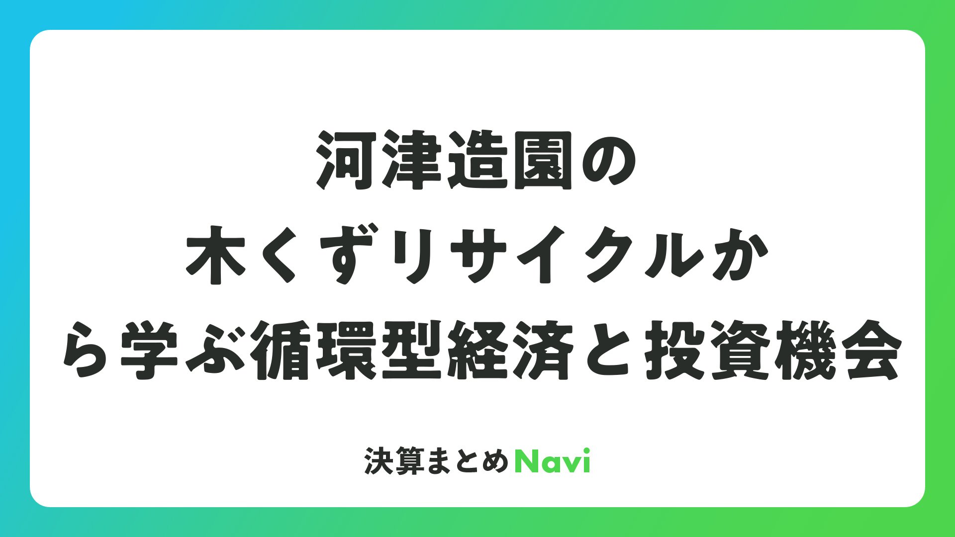 熊本県上益城郡益城町に拠点を置く河津造園株式会社 木くずリサイクルセンターは、造園工事で発生する伐採材や解体系木くず、刈り草などを受け入れ、チップ化・堆肥化を通じて再資源化している地域事業者です。一見すると地方の造園業の取り組みにすぎないようにも見えますが、このビジネスモデルの背景には、カーボンニュートラルや循環型経済(サーキュラーエコノミー)という、日本の資本市場を動かしつつある大きなマネーフローの流れが隠れています。本記事では、株式投資・資産運用という観点から、木くずリサイクル事業が映し出す投資テーマを整理し、個人投資家としてどのように活かすかを考えていきます。