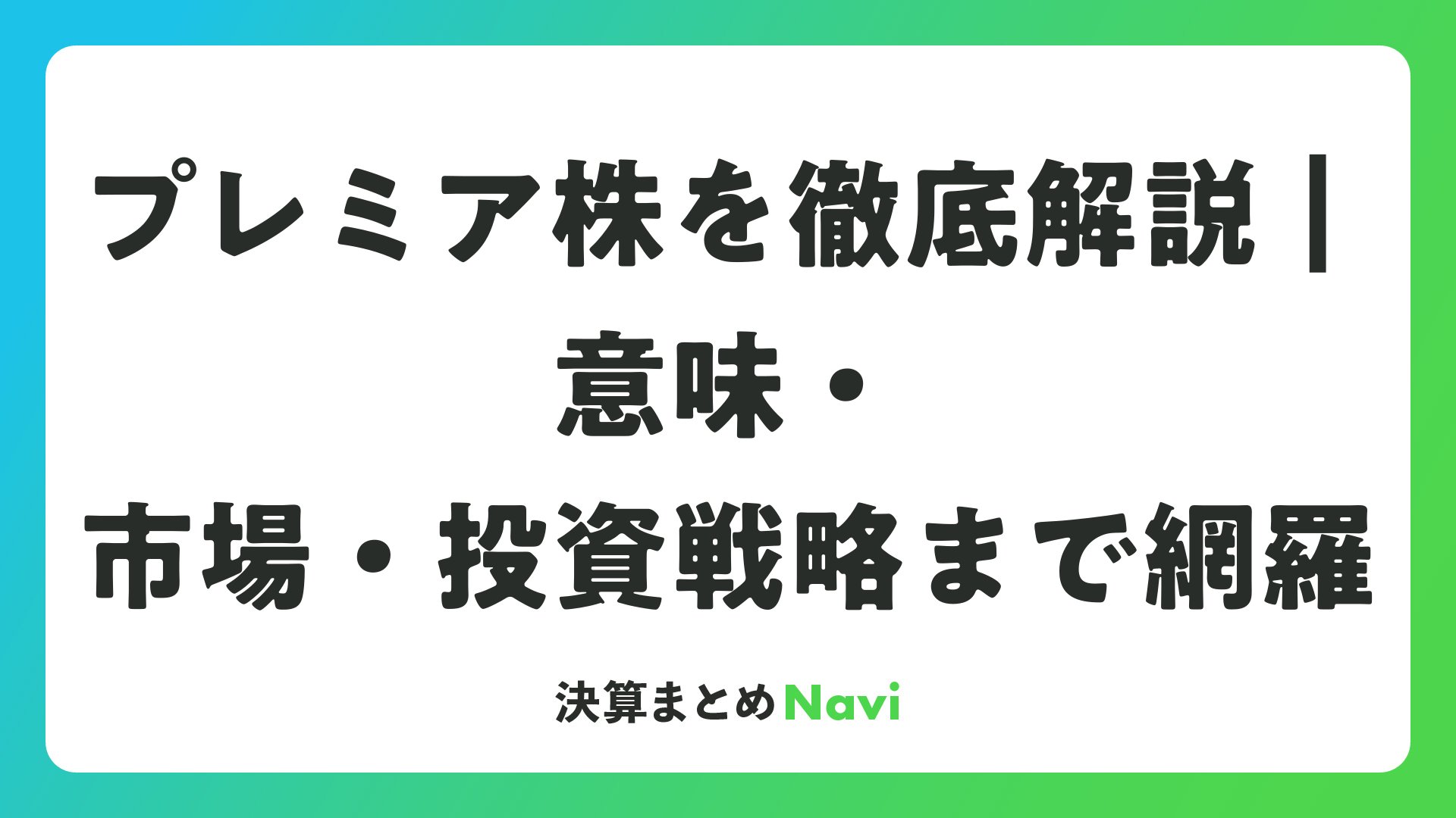 プレミア株を徹底解説|意味・市場・投資戦略まで網羅をまとめました
