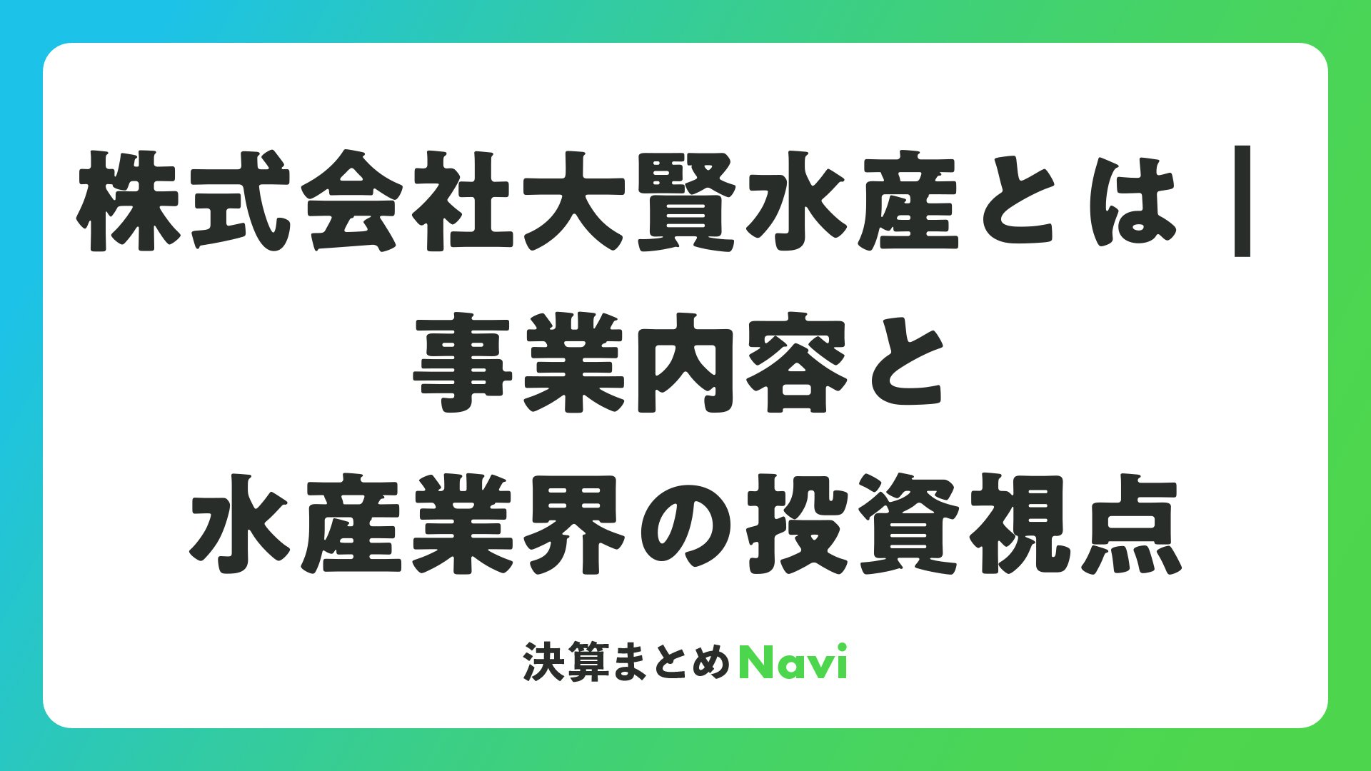 株式会社大賢水産の事業と水産業界の投資視点をまとめました