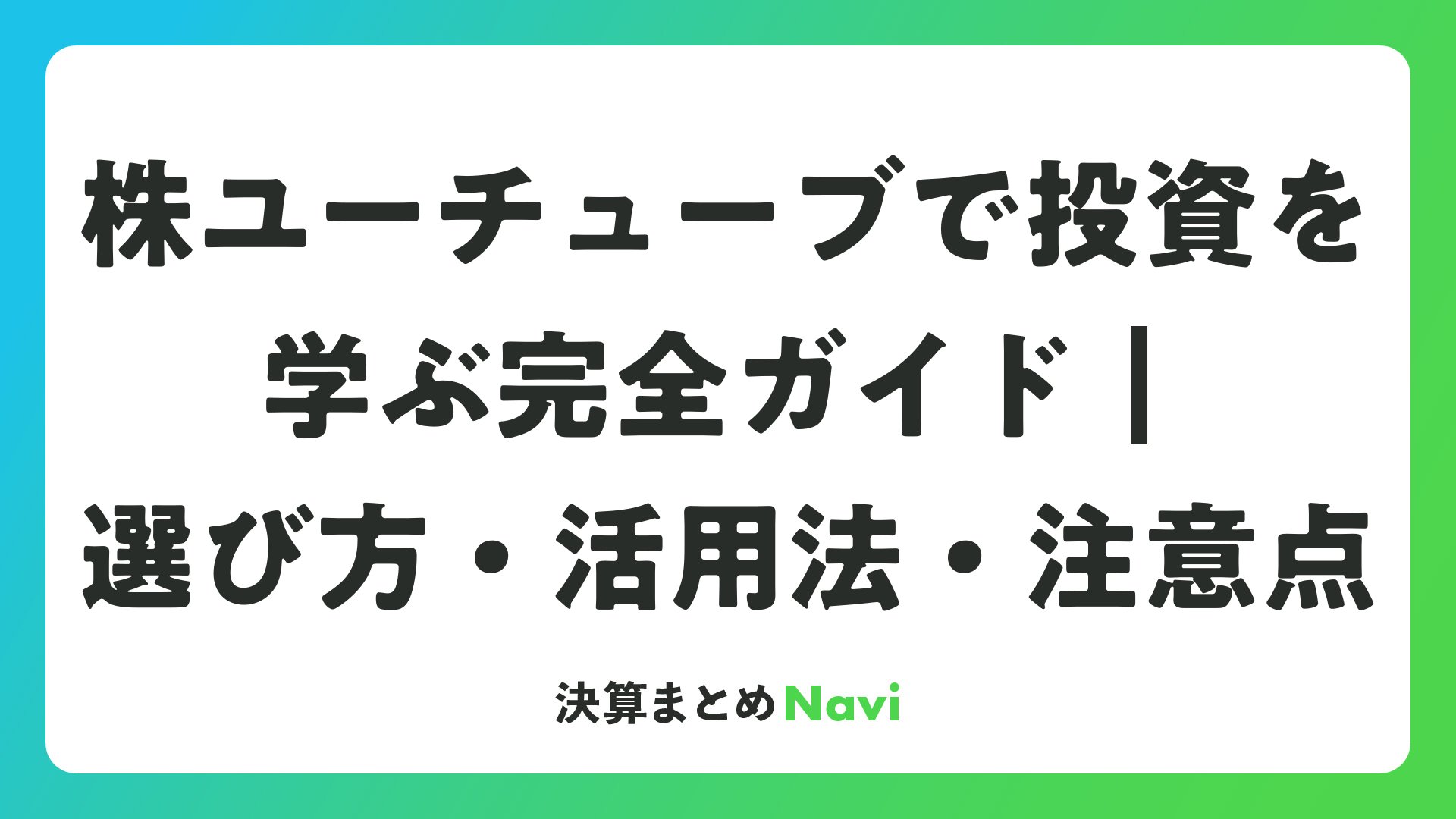 YouTubeを軸にしつつ、他のメディアもバランスよく組み合わせると、より洗練された投資判断ができるようになります。