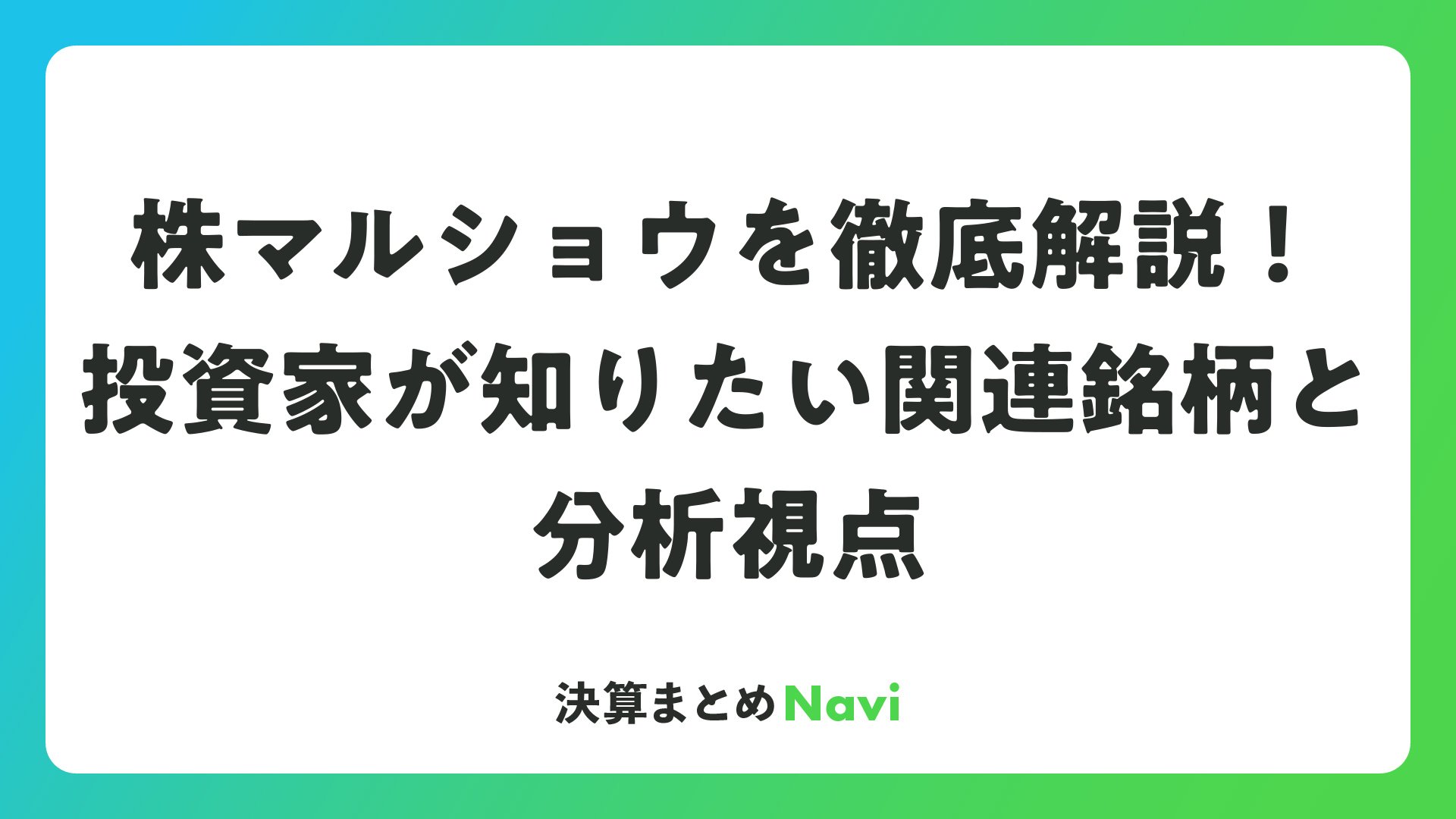 株マルショウを徹底解説!投資家が知りたい関連銘柄と分析視点をまとめました