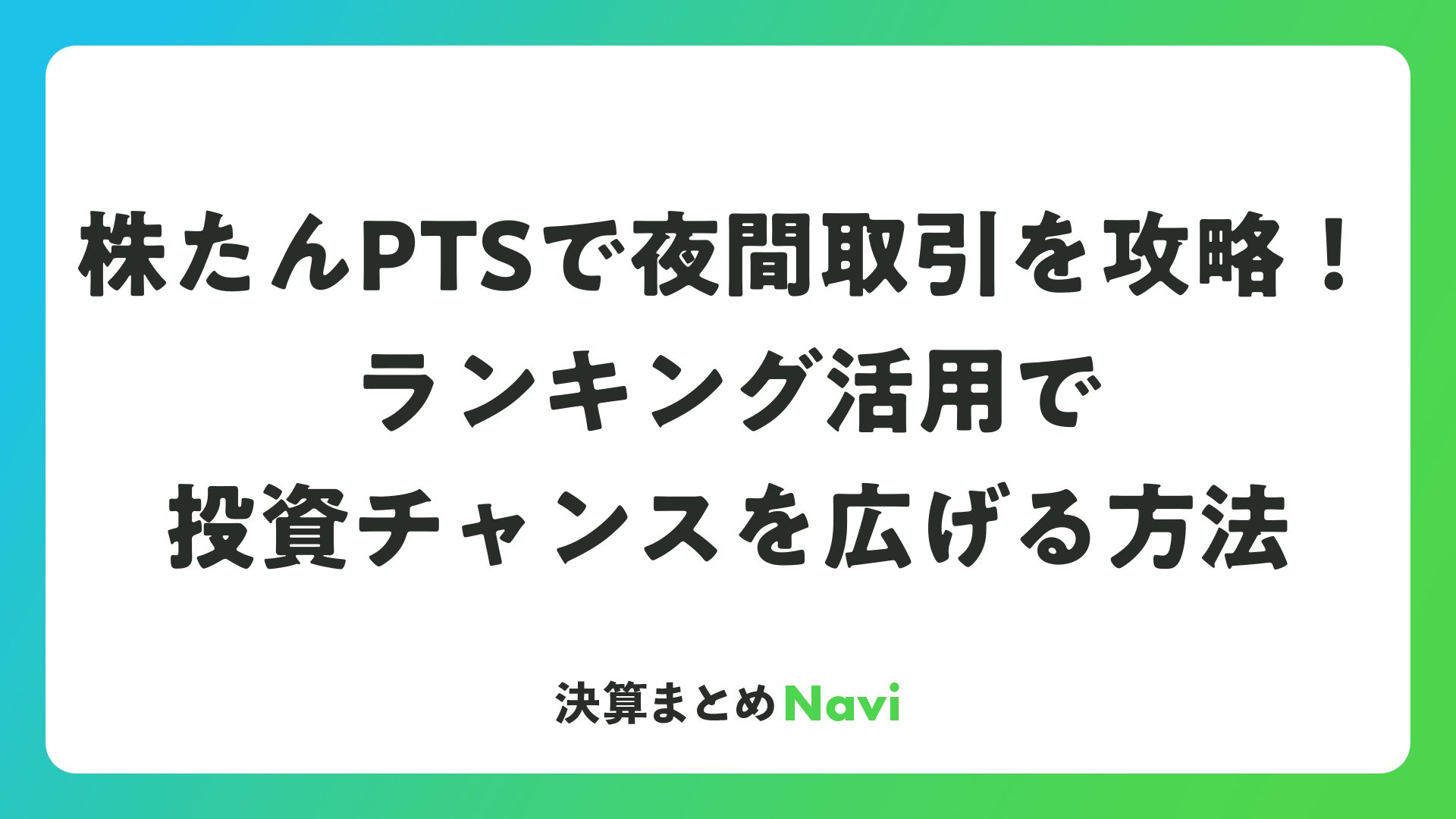 本記事では、株探が提供するPTS情報の基本から、デイタイム・ナイトタイムセッションのランキングを活用した投資アイデア、そしてPTS取引ならではのメリットと注意点までを解説しました。株たんPTSを日々のチェックポイントとして習慣化し、他の情報と組み合わせて活用することで、限られた時間のなかでも質の高い投資判断が可能になります。時間に縛られない柔軟な資産運用を目指す方にとって、株たんPTSは頼もしいパートナーとなってくれるはずです。